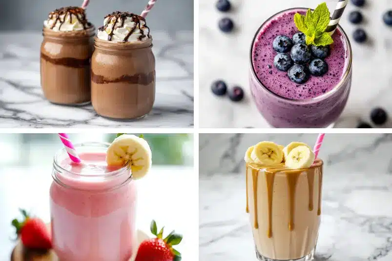 Definitely! A scoop of vanilla or unflavored protein powder blends seamlessly into all of these recipes, making them perfect as a protein breakfast smoothie.