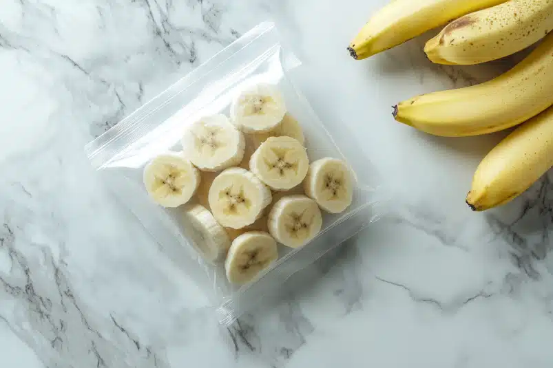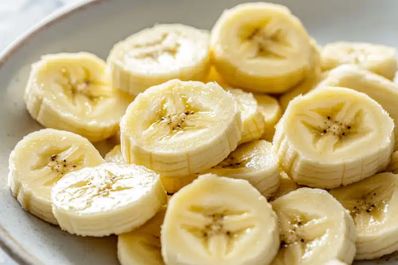 - Place the banana slices in the freezer for about 30 minutes to firm up.