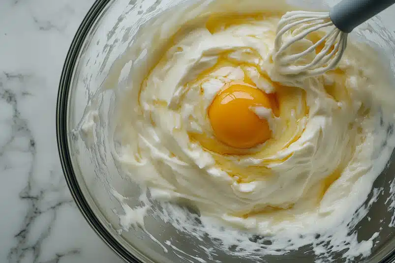 - Add egg and vanilla – Mix until well combined.
